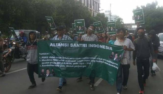 Massa Aliansi Santri Indonesia Demo Kantor PBNU Pusat
