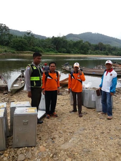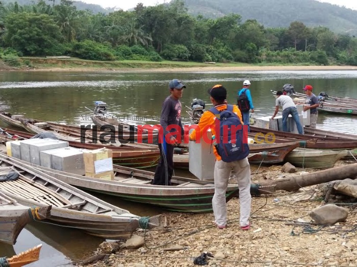 Logistik pilkada di Kampar Kiri Hulu didistribusikan menggunakan sampan