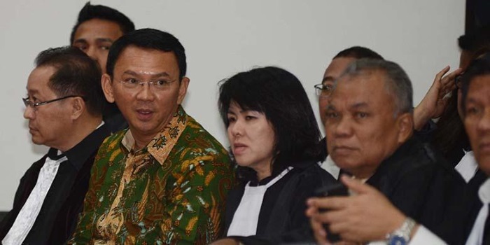 Terdakwa dugaan kasus penodaan agama Islam Basuki Tjahaja Purnama alias Ahok mendengar kesaksian Habib Rizieq sebagai saksi ahli agama yang direkomendasikan MUI (Foto: Merdeka.com)