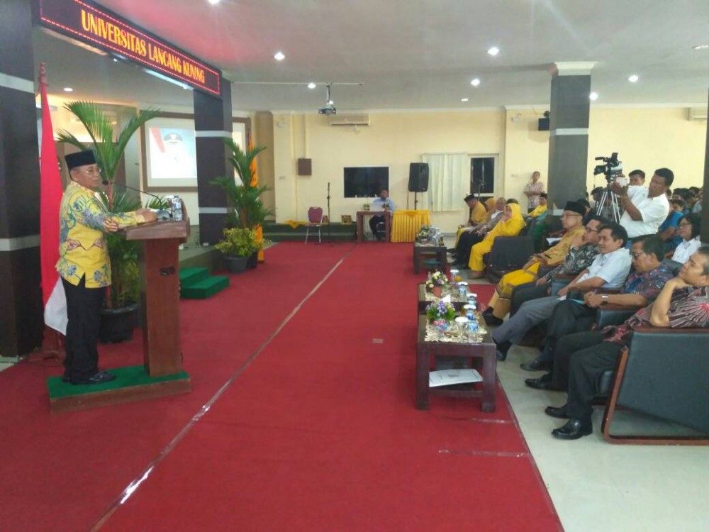 Hal itu disampaikannya saat tampil menjadi narasumber dalam Kuliah Umum di aula Gedung Fakultas Hukum Universitas Lancang Kuning, Jumat (5/5/2017). Kuliah umum yang ditaja Alumni Fakultas Hukum Unilak tersebut mengangkat tema Implementasi dan Kendala Otonomi Daerah, Gagasan dan Pengalaman Penyelenggaraan Daerah.