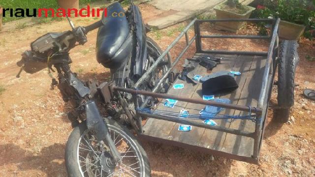 Untuk kondisi becak motor pembawa air minuman galon itu juga terlihat rusak parah. Selain ban depannya yang lepas, becak juga hampir lepas dari motornya. Motornya itu hanya dibiarkan tergeletak di salah satu rumah warga.