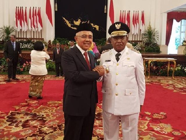 Gubernur Riau, Andi Rachman bersama Wan Thamrin Hasyim usai dilantik jadi Wagubri