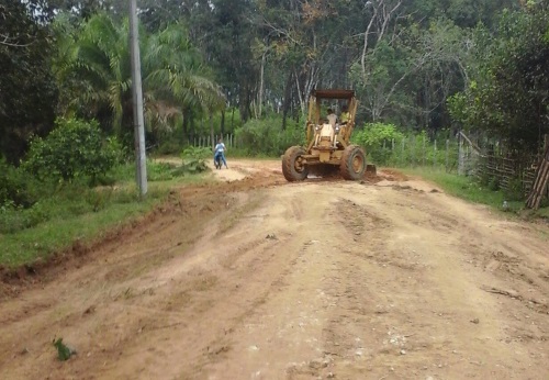 Salah satu proyek pengerjaan jalan di Kuansing yang sedang berjalan (Foto: RMC/Suandri)