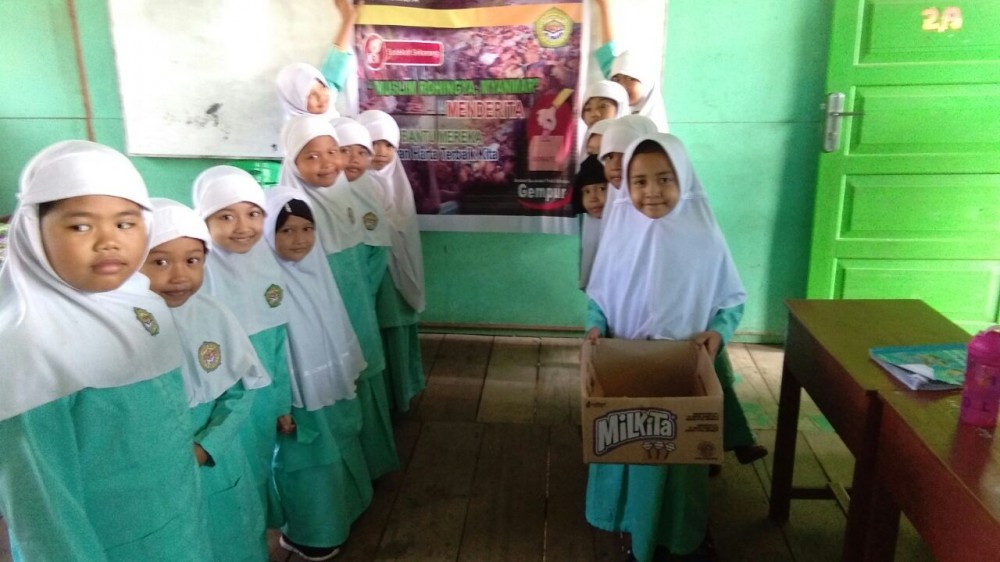 Sejumlah siswa SD Al Falah Rengat ikut mengumpulkan dana untuk Rohingya.