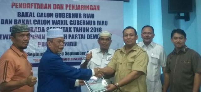 RIAUMANDIRI.co, PEKANBARU - H Nurzahedi atau yang akrab disapa Eddy Tanjung dipanggil oleh Tim Penjaringan Bakal Calon Gubernur dan Wakil Gubernur Riau DPD Partai Demokrat Riau untuk melengkapi berkas pendaftaran sebagai bakal calon gubernur Riau, Jumat (29/9/2017).