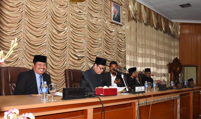 Bupati Bengkalis, Amril Mukminin menyampaikan kata akhir usai pengesahan APBD 2018.