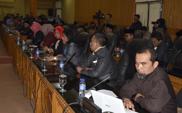 Anggota DPRD Bengkalis mengikuti rapat paripurna pengesahan APBD 2018.