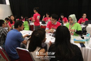 Kesibukan tim marketing Sky House BSD+ melayani masyarakat yang hendak membeli property.