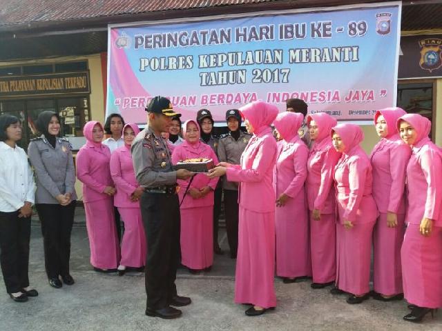 RIAUMANDIRI.CO, SELATPANJANG - Kepolisian Resor Meranti taja upacara peringatan Hari Ibu ke 89 dengan tema “Perempuan Berdaya, Indonesia Jaya” di halaman Mapolres Meranti, Jumat (22/12/2017).