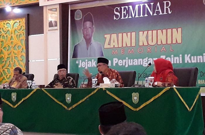 RIAUMANDIRI.CO, PEKANBARU - Mungkin tidak banyak yang tahu kalau Zaini Kunin pernah menjual mobil sedannya untuk membayar honor dosen Fakultas Hukum UIR di masa universitas tertua di Riau itu dalam kondisi sulit keuangan. Fakta tersebut diungkap Prof Dr Hj Ellydar Chaidir, SH, MHum dan Drs H Muchtar Samad pada Seminar Zaini Kunin Memorial 'Jejak dan Perjuangan' yang berlangsung di Gedung Rektorat Universitas Islam Riau Kampus Perhentian Marpoyan Pekanbaru, Sabtu siang (30/12/2017).