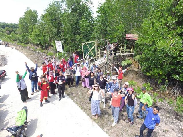 Para wisatawan dari luar negeri berkunjung ke Rumah Alam Bakau Kampung Rawa Mekar Jaya Sungai Apit. (Foto: RMC/Sugianto)