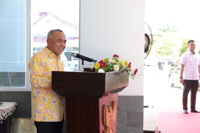 Gubernur Riau Arsyadjuliandi Rachman memberikan sambutan pada peresmian Gedung Instalasi Gawat Darurat Rumah Sakit Jiwa Tampan Provinsi Riau, di RSJ Tampan Pekanbaru.