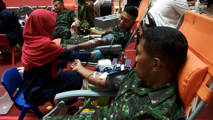 RIAUMANDIRI.CO, PEKANBARU - Lebih 50 prajurit TNI AD dan TNI AU ikut berpartisipasi dalam kegiatan donor darah PWI Riau bersempena peringatan Hari Pers Nasional (HPN) 2018 dan HUT ke-72 PWI. Donor darah yang digelar di Mal SKA Pekanbaru, Senin (19/2/2018) juga diikuti puluhan wartawan anggota PWI Riau. Sampai pukul 10.25 WIB, sudah berhasil terkumpul 14 kantong darah.