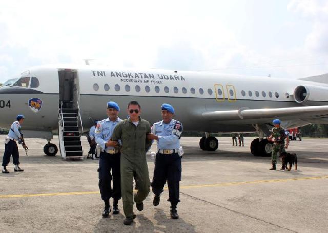 Dengan bersenjata lengkap laras panjang, prajurit TNI mengelilingi pesawat tersebut. Tampak tiga awak pesawat langsung ditangkap dan digelandang untuk kemudian diperiksa intensif.