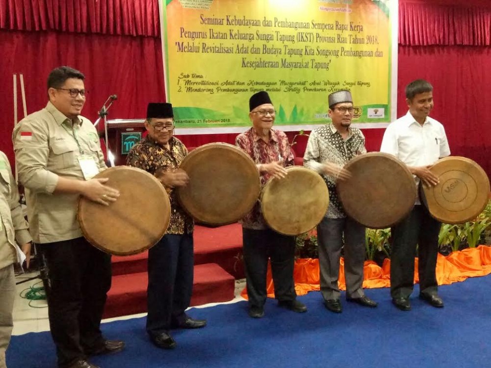 RIAUMANDIRI.CO, PEKANBARU - Kegiatan Seminar Adat dan Budaya Tapung serta Strategi Pembangunan Melalui Pemekaran Kecamatan di Wilayah Sungai Tapung dibuka oleh Ketua Dewan Pembina IKST Ir Nasrun Efendi dan Asisten I Setdakab Kampar Ahmad Yuzar, mewakili Bupati Kampar, Rabu (21/2/2018), di Hotel Mona Pekanbaru.