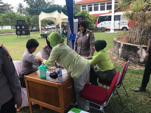 Personel Polresta Pekanbaru ikut donor darah yang ditaja Perempuan Lumbung Informasi (Lira).