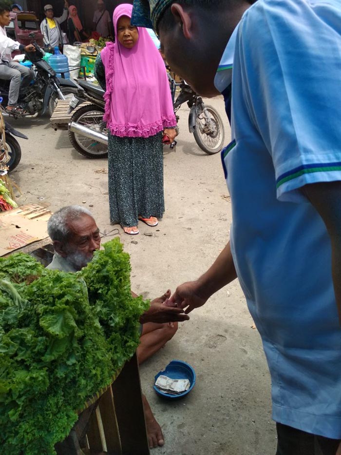 Dr H Firdaus secara spontan memberikan sedekah kepada pengemis di Pasar Ujung Batu.