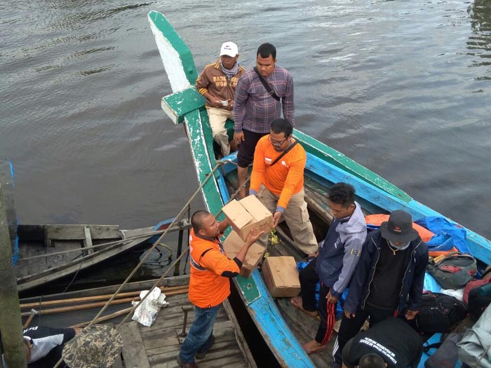 "Setelah sampai di Pelabuhan Bandaraya kami melanjutkan perjalanan lagi sekitar 1 jam perjalanan dengan berjalan kaki, dan ini adalah penyaluran dengan perjalanan yang cukup panjang," ujar Suardi, salah seorang relawan.