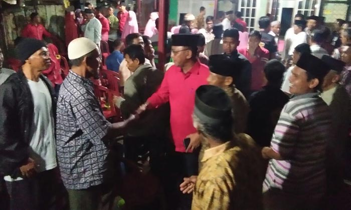 RIAUMANDIRI.CO, INDRAGIRI HILIR - Meskipun diwarnai hujan dan gelombang laut, dengan menggunakan speedboat yang memakan waktu tempuh lebih kurang 60 menit ke lokasi kampanye dialogis, Calon Wakil Gubernur Riau nomor urut 4 H Suyatno yang berduet dengan Calon Gubernur Riau Arsyadjuliandi Rachman tetap melakukan silaturahmi dengan warga Desa Tanah Merah, Kecamatan Tanah Merah, Indragiri Hilir, Sabtu (3/3/2018) malam.