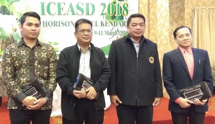 Dr Husnul Kausarian menerima cenderamata dari Panitia Konferensi Internasional di Kendari, Sulawesi Tenggara.