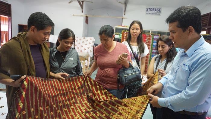 Mahasiswa pascasarjana dari Lee Kuan Yew of Public Policy antusias melihat koleksi tenun dari CD RAPP.