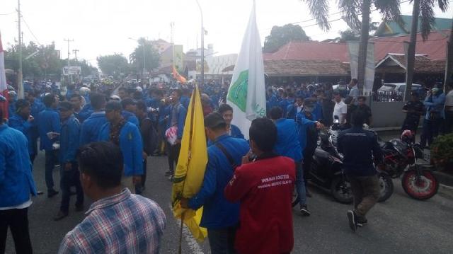 Mahasiswa sejumlah universitas di Riau ini tergabung dalam Aliansi Rakyat Menggugat, terdiri dari Universitas Riau, UIN, UIR, PCR dan kampus lainnya.