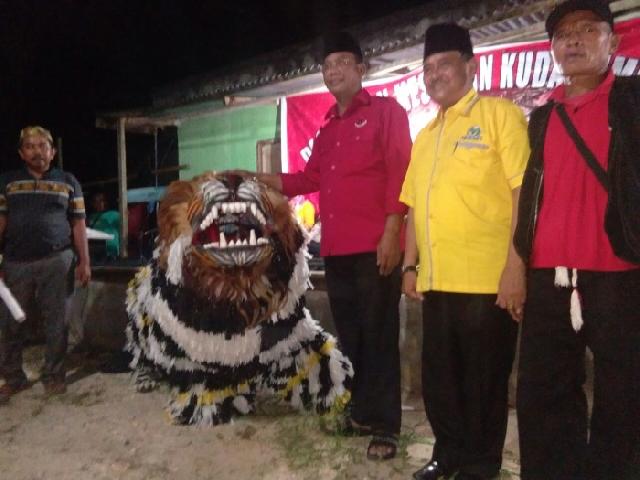 Usai kampanye dialogis dengan warga, calon Wakil Gubernur Riau Suyatno langsung menyaksikan Kesenian Kuda Lumping Turunggo Yakso Mekar Sari. Berbagai atraksi memukau ditampilkan seperti panjat pohon kelapa, makan arang, serpihan kaca, dan atraksi lainya. Tampak hadir mendamping Suyatno antara lain Sekretaris DPD PDIP Riau H Syafrudin Poti, dan sejumlah kader partai koalisi.***