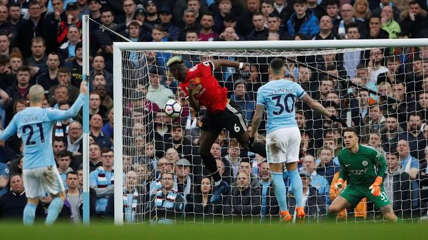 Pogba! MU lantas menyamakan skor jadi 2-2 dua menit berselang. Kembali kombinasi Sanchez dan Pogba membuat pertahanan City terbuka. Kali ini crossing Sanchez dari sisi kanan pertahanan tuan rumah berhasil disambut kepala Pogba untuk menjebol jala Ederson.