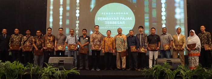 RIAUMANDIRI.CO, PEKANBARU - Sebanyak 99 Wajib Pajak (WP) mendapat penghargaan dari Direktorat Jenderal Pajak (DJP) Riau dan Kepulauan Riau, Senin (9/4/2018), di Pekanbaru. Penghargaan diberikan kepada WP perorangan dan badan usaha atas kontribusinya terhadap pembangunan bangsa.