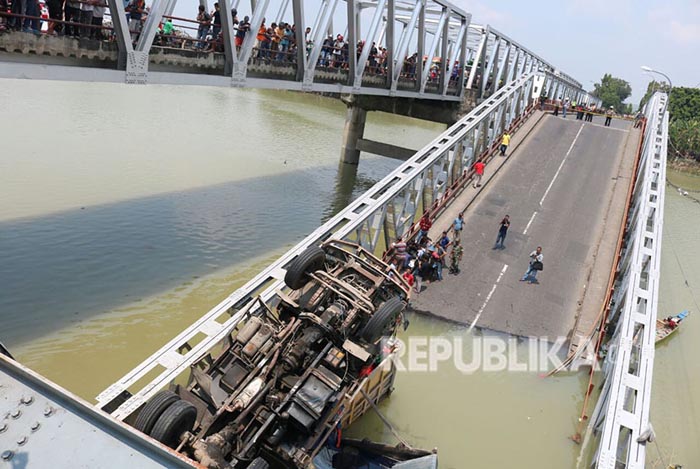 Jembatan ambruk yang menghubungkan Kabupaten Tuban dengan Kabupaten Lamongan.