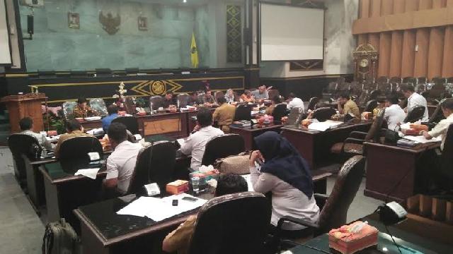 Rapat evaluasi Ranperda LKPJ di Ruang Paripurna DPRD Kota Pekanbaru, Selasa (17/4/2018).