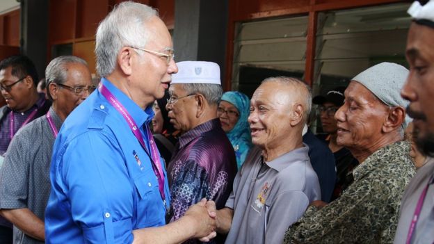 Najib Razak menghadapi berbagai masalah, termasuk dugaan korupsi, keluhan warga atas kenaikan biaya hidup dan ketegangan antaretnik. Koalisi Barisan Nasional memerintah sejak tahun 1957 dan belum pernah kalah sejauh ini.