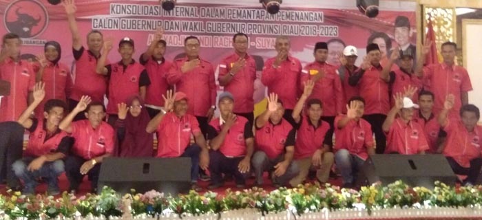 “DPC PDIP Meranti dan jajaran PAC hingga ranting-ranting siap dan solid memenangkan pasangan Andi Rachman-Suyatno pada Pilgubri 2018 ini. Kami akan ‘merahkan' Meranti," ujar Ketua DPC Meranti Jagdev Singh saat memberikan sambutan rapat konsolidasi di Hotel Gran Meranti, Sabtu (12/5/2018).