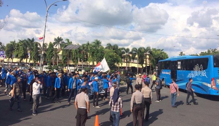 Aksi demonstrasi mahasiswa di Jalan Sudirman, Pekanbaru.