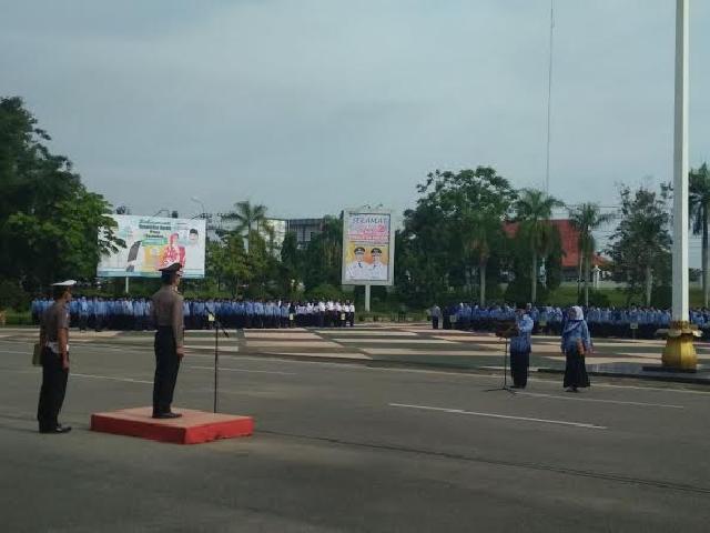 RIAUMANDIRI.CO, RENGAT - Kapolres Indragiri Hulu AKBP Dasmin Ginting memimpin upacara Hari Kebangkitan Nasional ke-110 di halaman kantor Bupati Inhu, Senin (21/5/2018) pagi dengan dihadiri ribuan peserta upacara.
