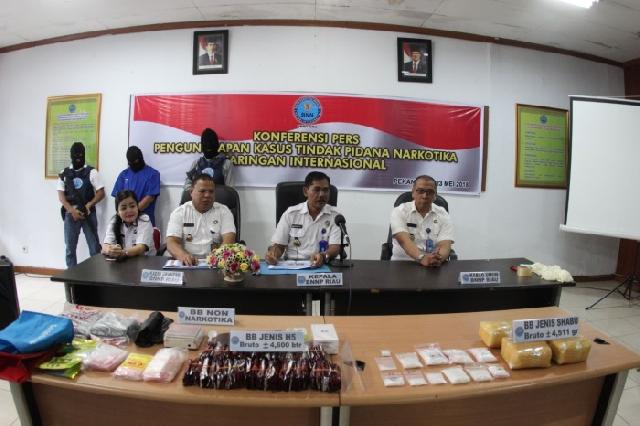 Dikatakan Kepala BNNP Riau, Brigjen M Wahyu Hidayat, barang bukti dan para tersangka itu diamankan dari dua kasus yang diungkap dalam sepekan terakhir. Dari sana diketahui, peredaran narkoba ini dikendalikan oleh narapidana dari dalam Lapas. Ada yang dikendalikan oleh narapidana Lapas Cipinang Jakarta Timur, dan ada pula dikendalikan oleh narapidana Lapas Klas II A Pekanbaru.
