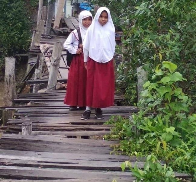 Viral Jembatan Lapuk, Ini Penjelasan Kepala Desa Teluk Kiambang Inhil