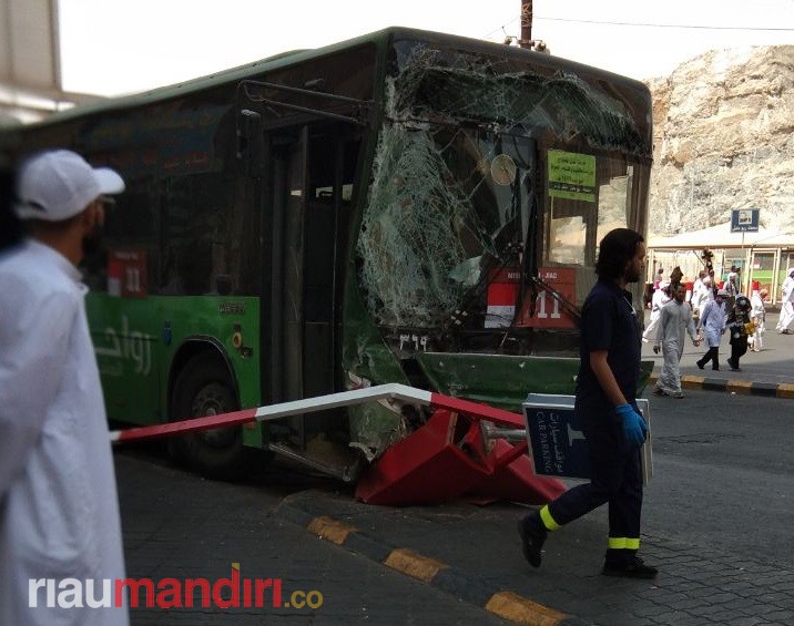 RIAUMANDIRI.CO, MAKKAH - Bus pengangkut Jamaah Calon Haji (JCH) asal Indonesia, termasuk jamaah asal Riau BTH 4 asal Inhu, mengalami kecelakaan di jalan menuju Masjidil Haram, Jumat (10/8).