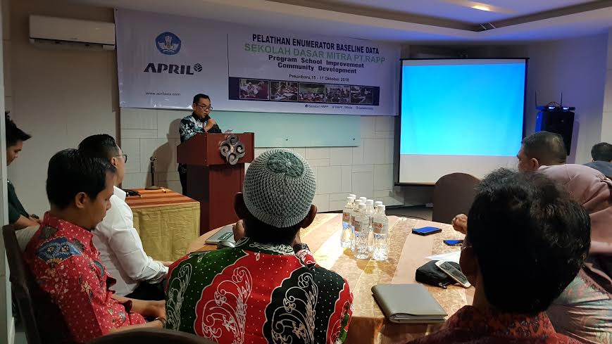 RIAUMANDIRI.CO, PEKANBARU - Community Development (CD) PT Riau Andalan Pulp and Paper (RAPP) bersama Tanoto Foundation melangsungkan kegiatan Pelatihan Enumerator Base Line Data bersama sekolah dasar mitra PT RAPP, Senin (15/10/2018) di Hotel Grand Tjokro Pekanbaru. Kegiatan ini akan berlangsung hingga 17 Oktober mendatang.