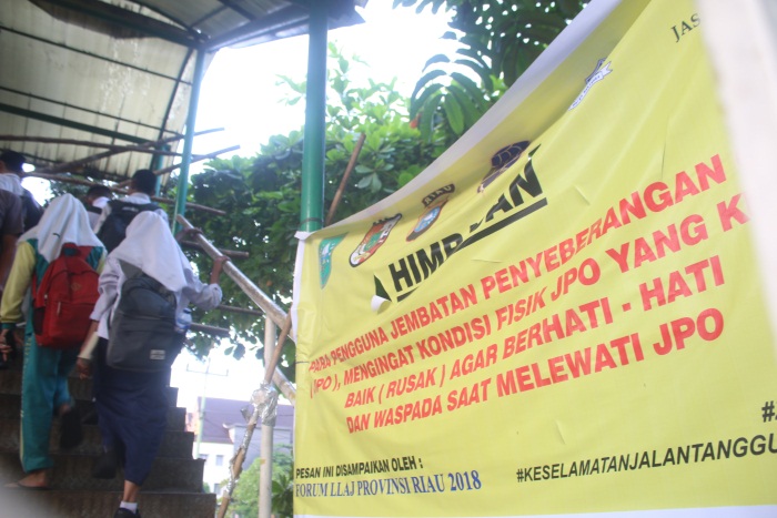 "Salah satunya dengan melakukan pemasangan kayu pembatas. Karena untuk melakukan perbaikan, Dishub belum memiliki kewenangan karena saat ini JPO tersebut masih dalam peralihan aset dari pihak ketiga ke Pemerintah Kota Pekanbaru. Makanya untuk sementara, kita pasang plang di JPO," pungkasnya.