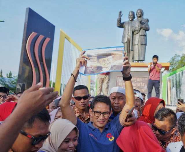 RIAUMANDIRI.CO, PAPREPARE – Dalam safari politiknya ke tanah Sulawesi Selatan (Sulsel), Calon Wakil Presiden Sandiaga Salahuddin Uno menyempatkan diri berhenti di kota Parepare untuk berfoto di Monumen Cinta Ainun Habibie di alun-alun kota kelahiran Presiden RI ke 4 tersebut, Sabtu (3/11/2018).