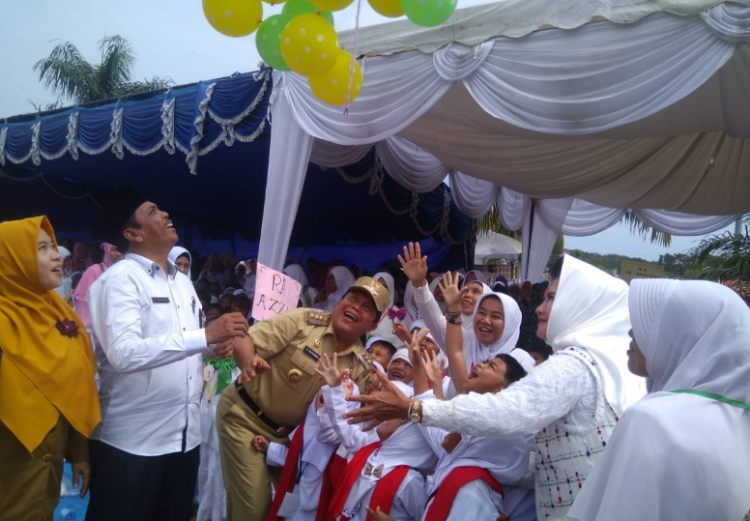 RIAUMANDIRI.CO, PASIR PENGARAIAN - Bupati Rokan Hulu, H Sukiman, secara resmi membuka acara praktek manasik Raudhatul Athfal (RA) yang ditaja oleh Ikatan Guru Raudhatul Athfal (IGRA) Rohul. Hal ini ditandai dengan pelepasan balon ke udara, Senin (19/11/2018).