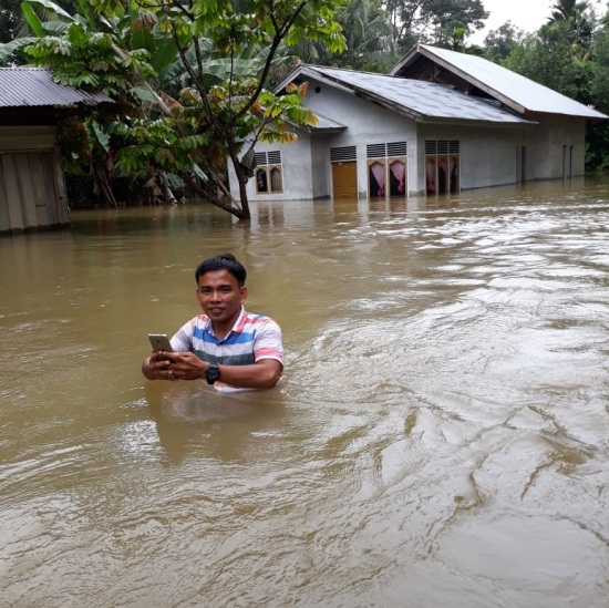 Kades alumni UIN Suska Riau ini memaparkan, kondisi desanya yang berada di sepanjang bibir sungai ditambah lagi terbatasnya turap membuat desanya mulai tergenang air sejak Jumat (7/12) lalu.