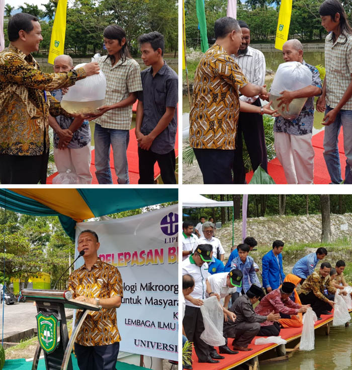 Menurut Dr Ir Agusnimar, MSc, 10 ribu bibit ikan itu merupakan hasil penelitian dosen-dosen UIR dari pemanfaatan pakan fungsional menggunakan mikroorganisme yang dibuat LIPI, lalu digabungkan dengan tekhnologi sehingga menghasilkan benih ikan.