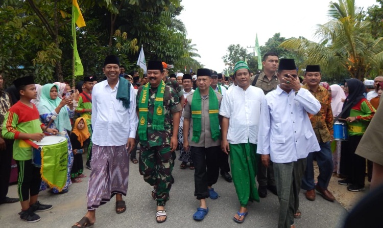 RIAUMANDIRI.CO, TAPUNG - Panglima TNI Marsekal Hadi Tjahjanto bersama Kapolri Jenderal Polisi Karnavian berkunjung ke Pondok Pesantren Nurul Iman Desa Sumber Makmur Kecamatan Tapung, Kabupaten Kampar, Rabu (13/3/2019). Kunjungan ini dalam rangka silaturahmi kebangsaan bersama pimpinan ponpes, para Santri, tokoh agama dan tokoh masyarakat.