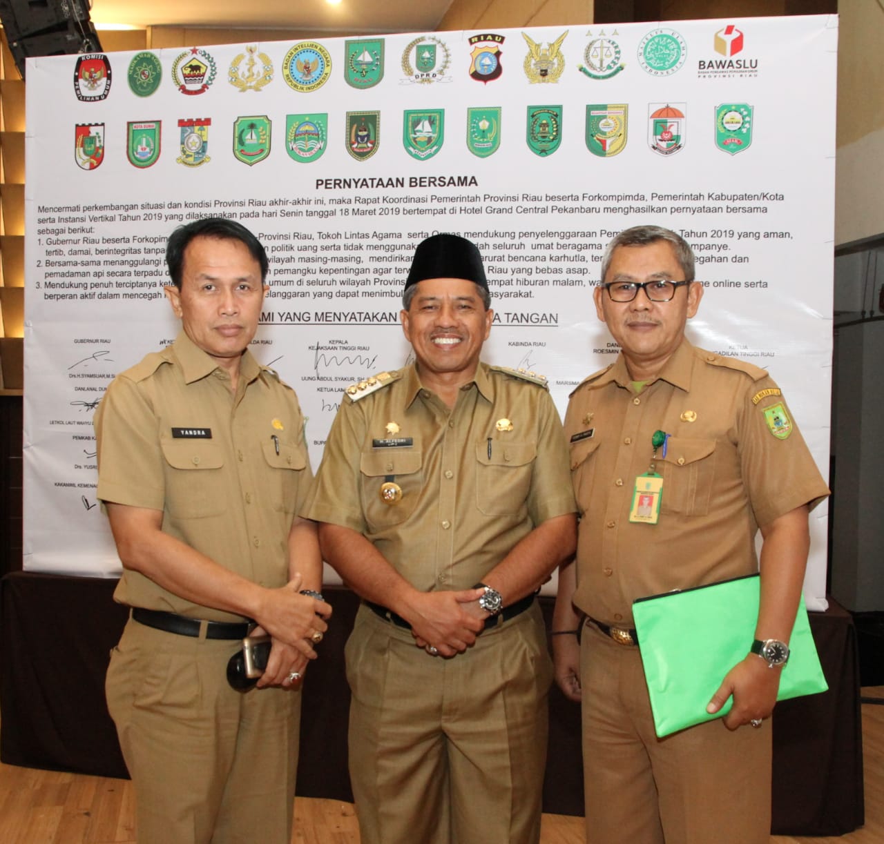 Rapat Koordinasi dilaksanakan untuk. Memfasilitasi Pelaksanaan Tugas dan Fungsi Instansi Vertikal Bersama Pemerintah Provinsi Riau Pemerintah Kabupaten/Kota dan Forkopimda se Riau Tokoh Masyarakat, Agama serta Ormas tahun 2019.