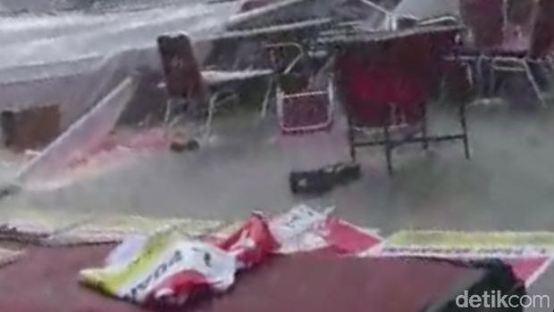 Namun, Fahmi memastikan tidak ada korban nyawa maupun luka akibat tertimpa tenda tersebut.