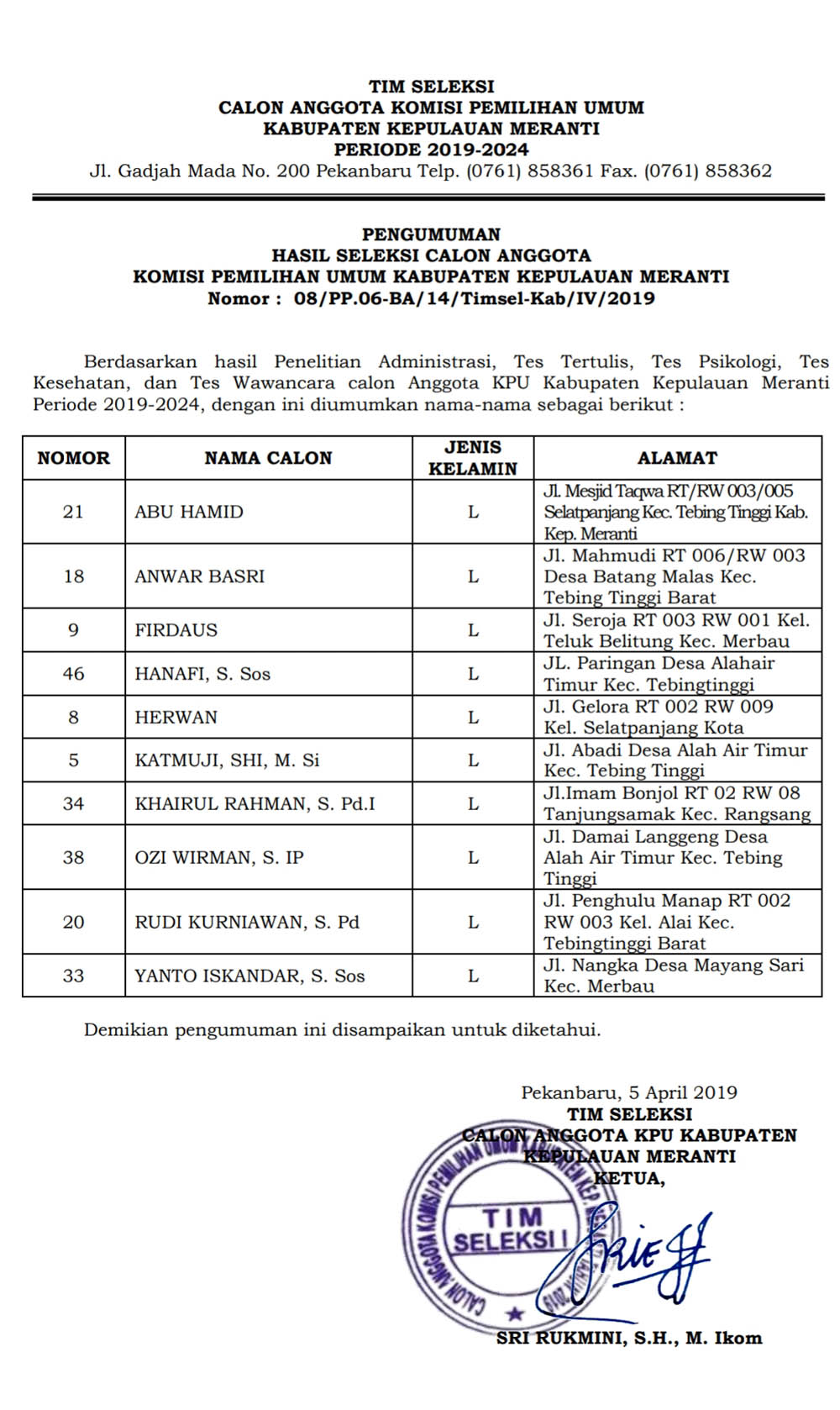 Ke-10 nama besar tersebut juga telah diumumkan di laman KPU Riau http://kpu-riauprov.go.id/v2/images/pdf/10_mranti.pdf.