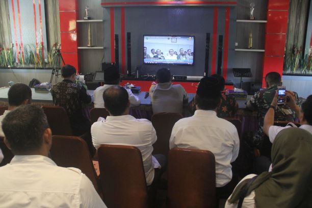 Video conference dipimpin langsung oleh Gubernur Riau Syamsuar, dan diikuti Bupati/Walikota se-Provinsi Riau, termasuk Bupati Siak Alfedri.