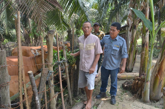Salah satu masyarakat Desa Batu Gajah, Sukidi (71) yang selama ini selain menjadi petani sawit juga mendapatkan Program DMPA PT PSPI untuk jadi peternak sapi bantuan dari PT PSPI.